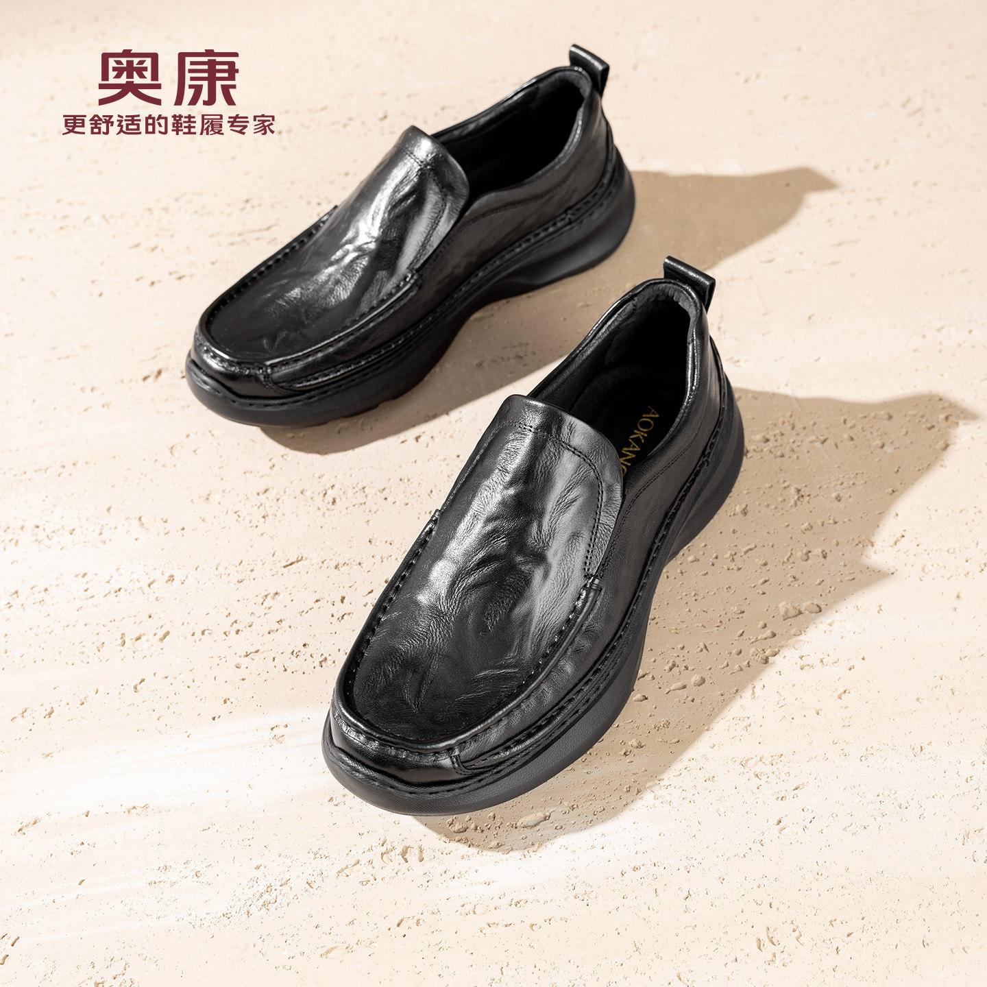奥康 男鞋2025秋季新款乐福鞋平底舒适防滑一脚蹬豆豆鞋门店发货