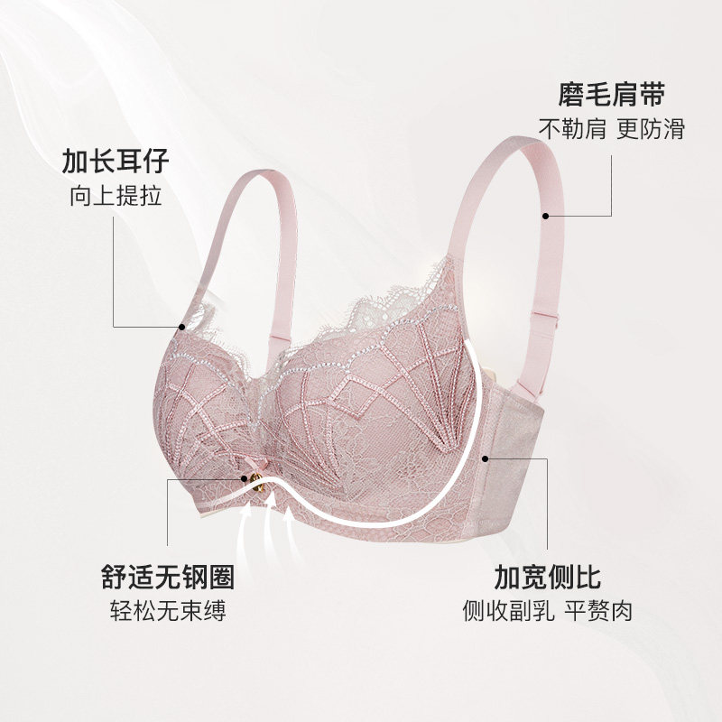 【商城同款】古今内衣舒适无钢圈睫毛蕾丝侧收聚拢文胸罩