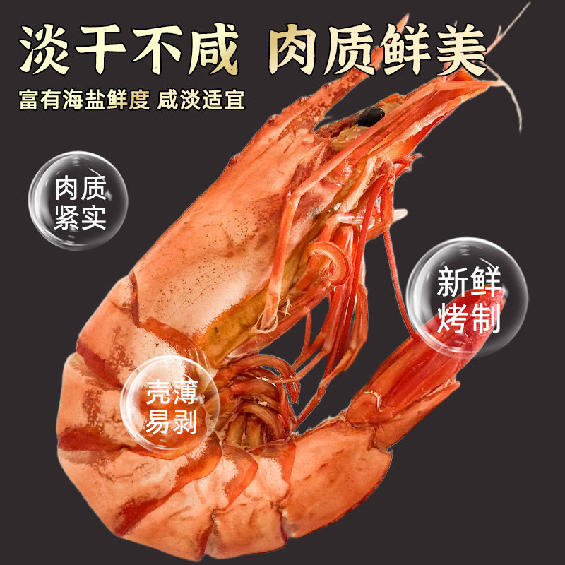 特大烤虾干即食无海鲜盐炭烤对虾干货大号产孕妇儿童休闲零食小吃