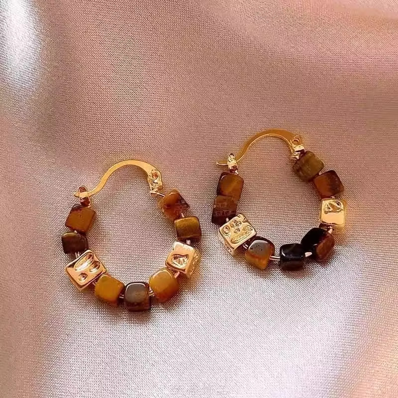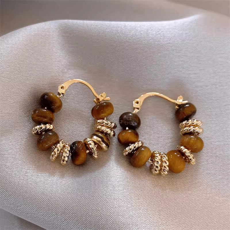 欧美跨境复古咖色耳扣轻奢美拉德风时尚耳环女高级感耳饰品虎眼石