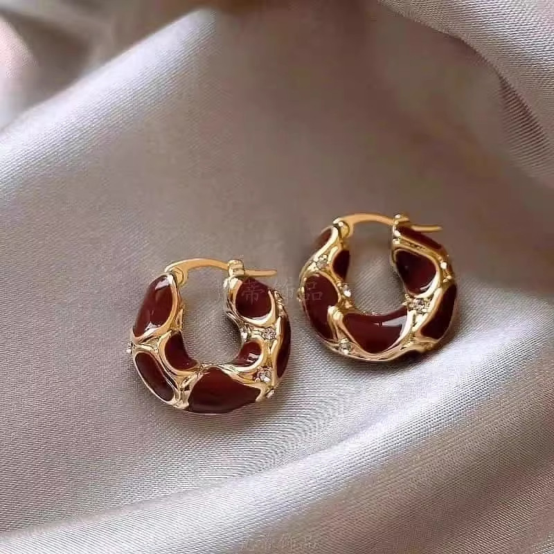 999纯银耳针耳环圈圈大圈秋冬红色耳饰女耳圈高级感轻奢素圈耳夹