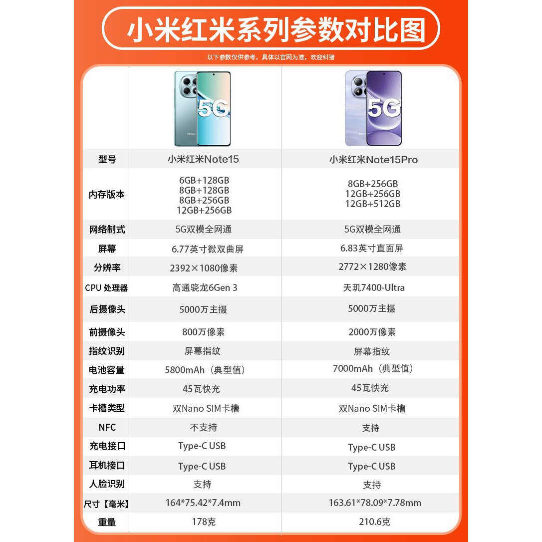 MIUI/小米 REDMI Note 15 Pro手机7000mAh大电池5G全网通智能拍照
