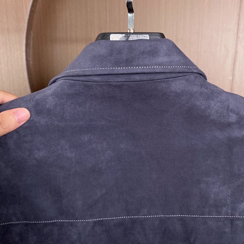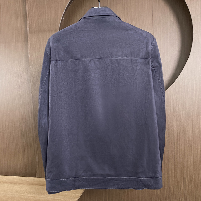 男士撤标秋款仿麂皮绒明线装饰多口袋有型流行修身纯色翻领夹克