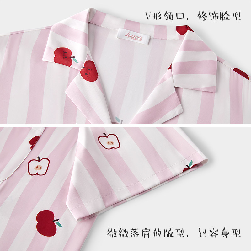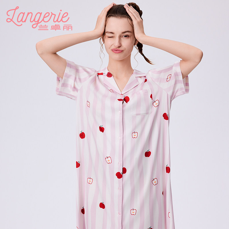 兰卓丽商场同款睡裙女开襟翻领印花冰雪丝睡衣短袖可外穿2026夏季
