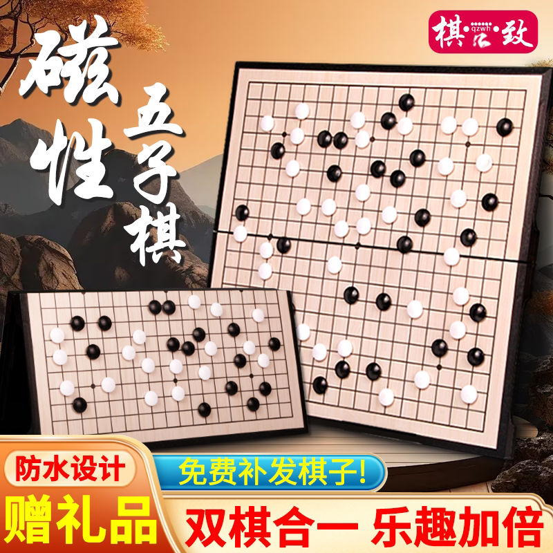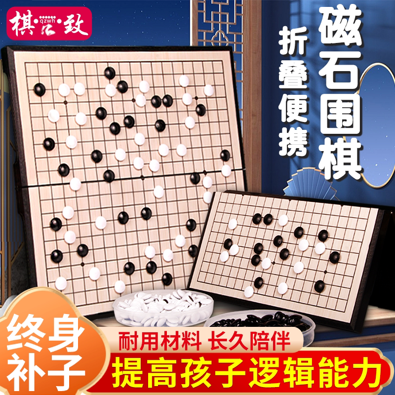 磁性围棋五子棋子儿童小学生初学益智大人便携可折叠棋盘套装