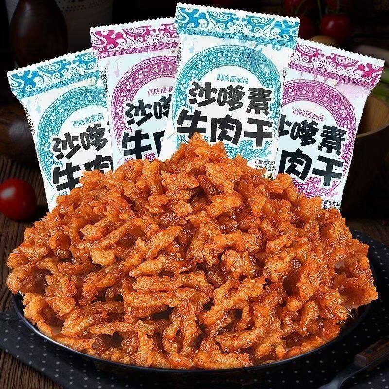 沙嗲素牛肉干怀旧辣条甜辣牛肉粒儿时经典素肉沙爹素小吃零食童年
