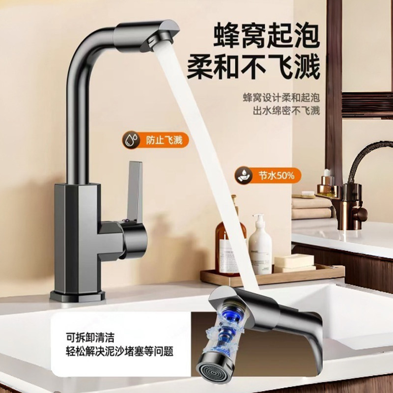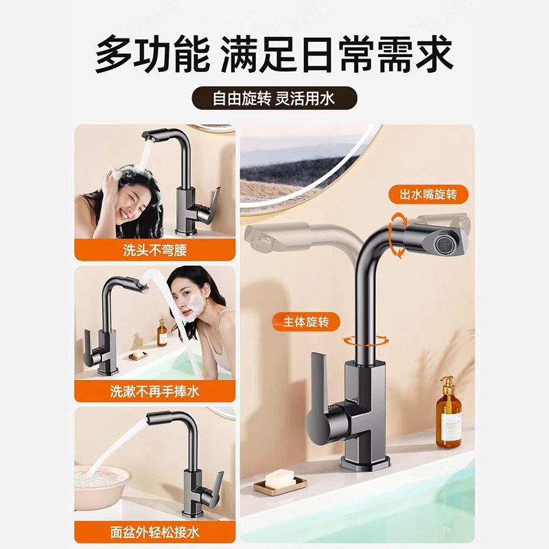 精铜面盆水龙头家用卫生间冷热旋转洗手洗脸盆龙头加高可旋转单冷