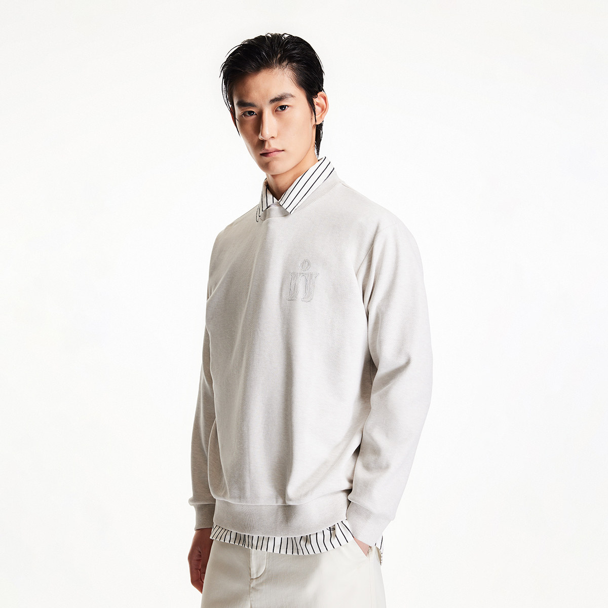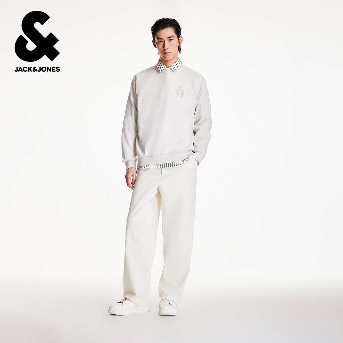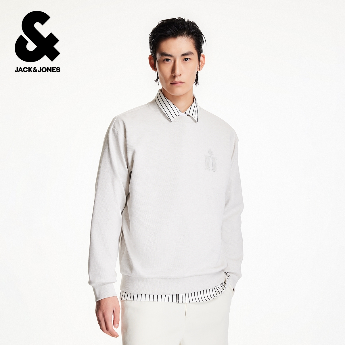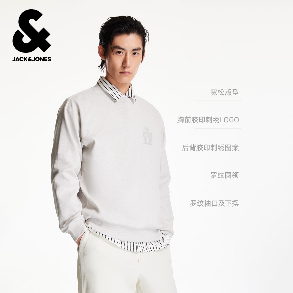 杰克琼斯男装卫衣春季百搭时尚胶印刺绣宽松休闲圆领长袖潮上衣
