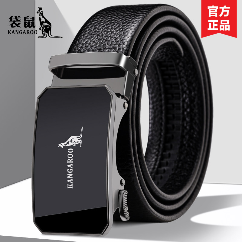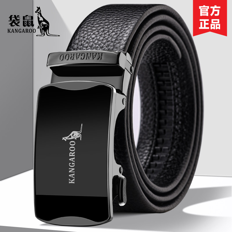 袋鼠皮带男士真皮2026新款中年老年自动扣高档纯牛皮商务裤腰带潮