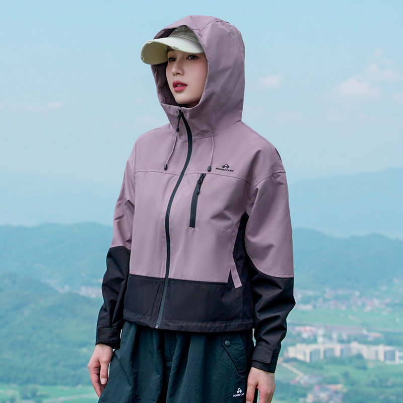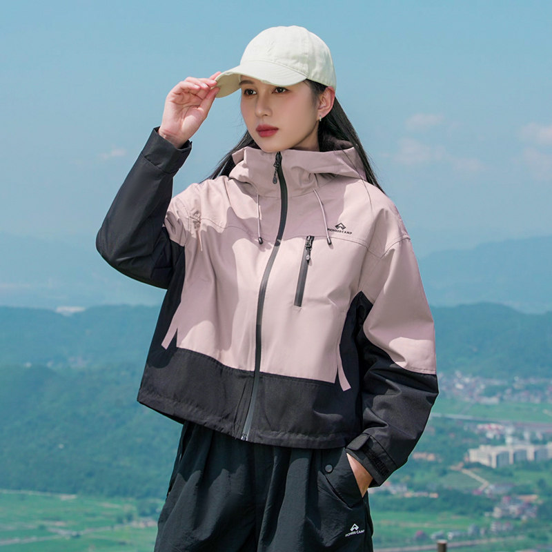 拓路者春秋新款连帽拼色夹克女户外耐磨防风短款小个子登山服外套