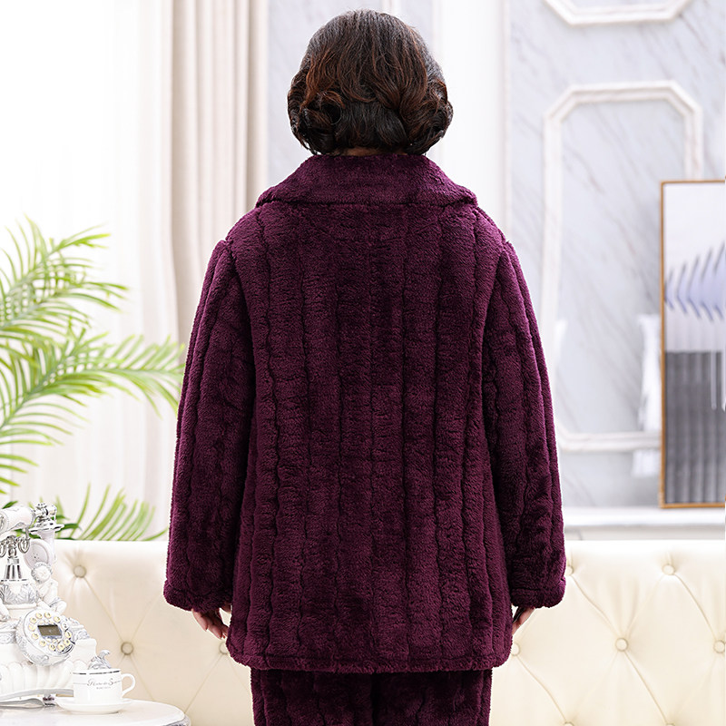 冬季中老年睡衣女珊瑚绒老人三层夹棉加绒加厚家居服保暖套装妈妈