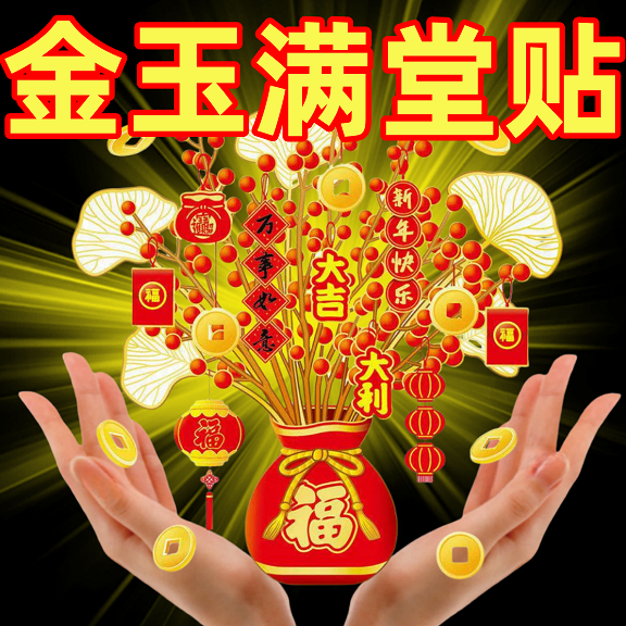 2026新年过年装饰发财树窗花贴福袋门贴玻璃贴纸蛇年春节静电贴画