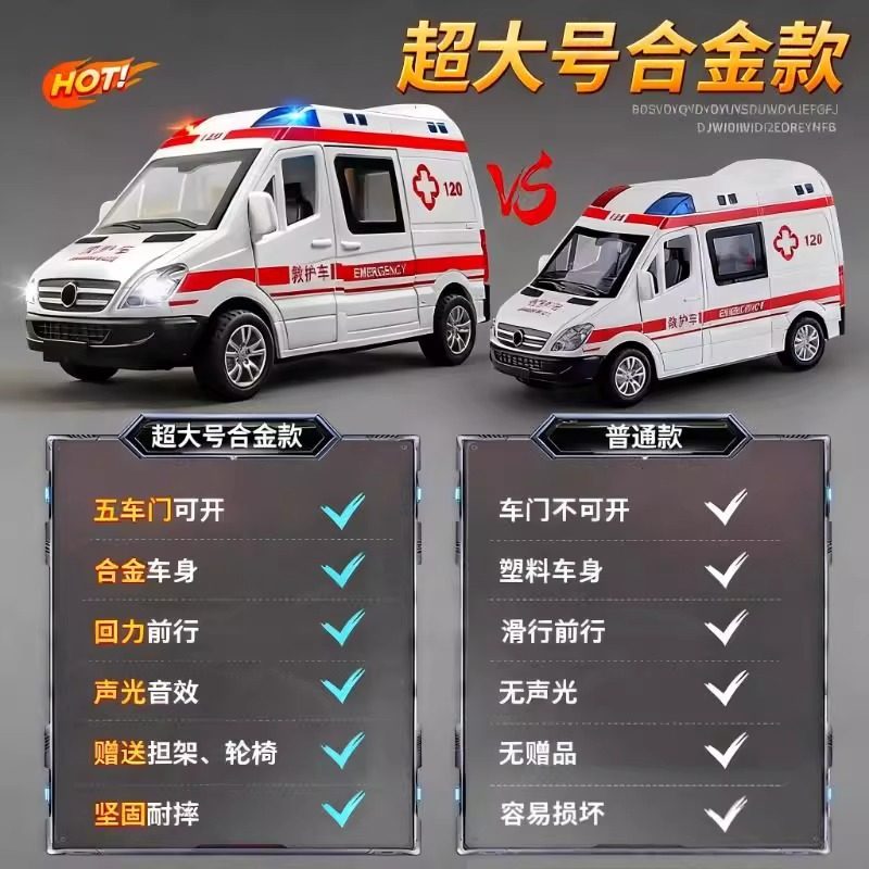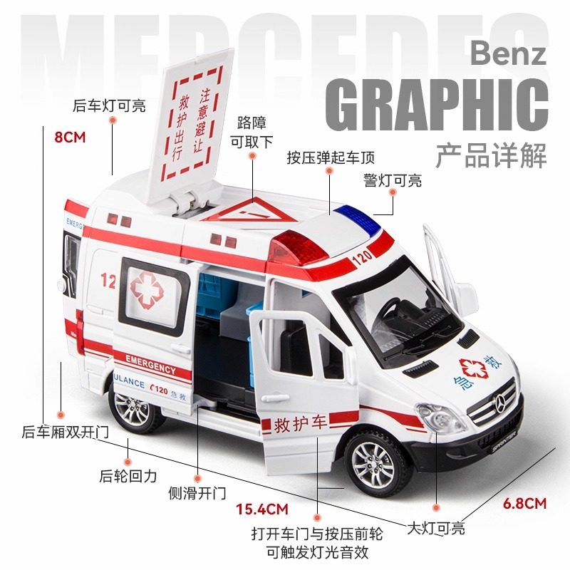 超大号救护车玩具男孩女孩120仿真玩具车警车汽车模型合金开门