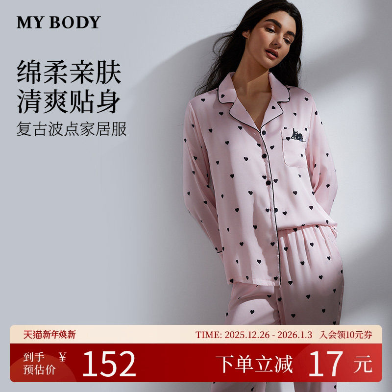 MYBODY商场同款睡衣套装女2025秋季新款波点长袖长裤家居服可外穿