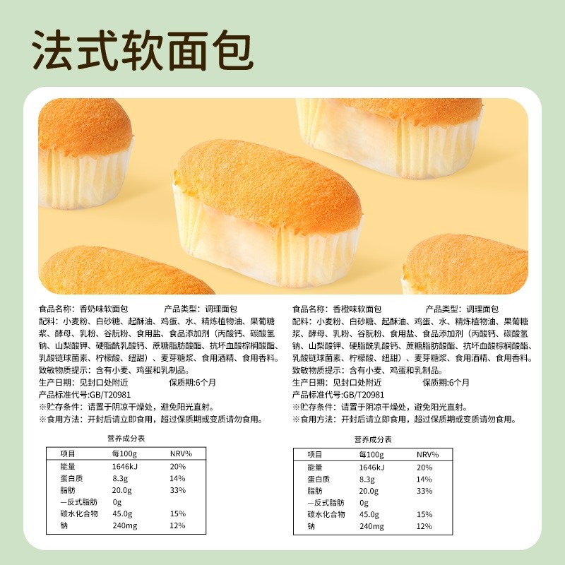 达利园360g法式软面包香奶香橙手撕小面包整箱官方批发休闲食品