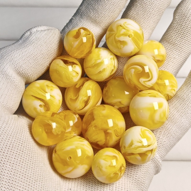 文玩配饰天然鸡油黄二代琥珀蜜蜡珠子妖金白花圆珠DIY星月菩提