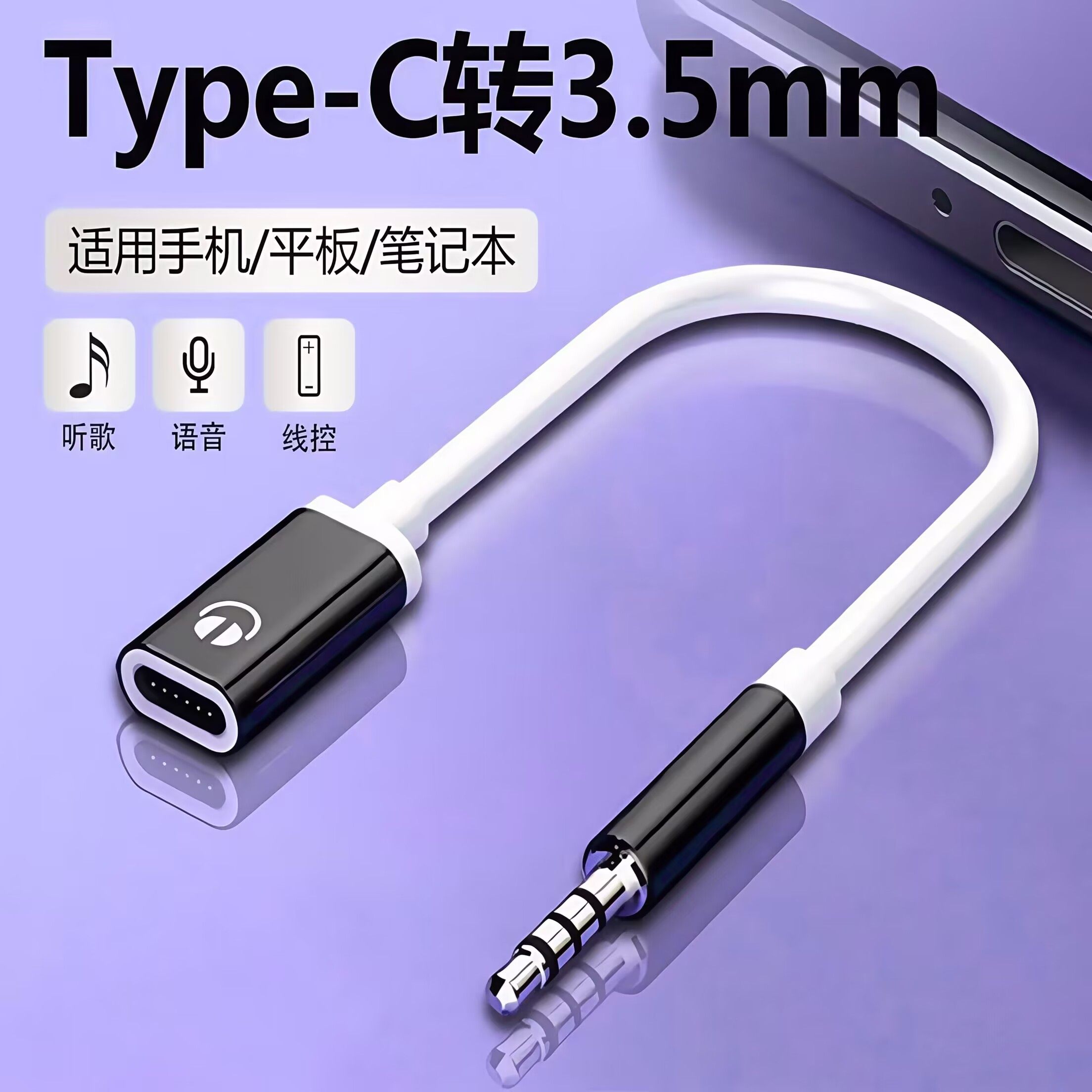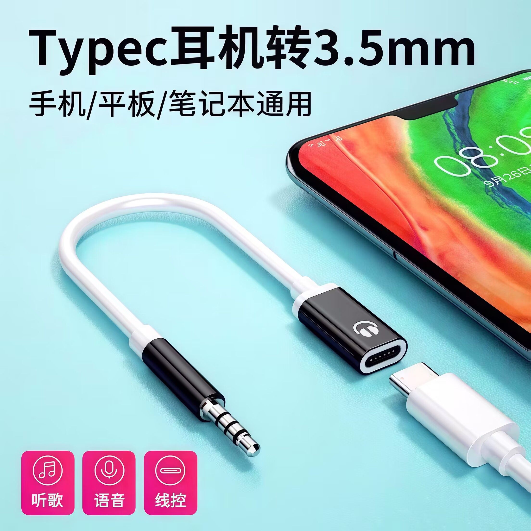 适用于Type c耳机转3.5MM转接头vivo手机OPPO转换器tpyec母tpc扁头转3.5公插头圆孔电脑笔记本平板音频线通用