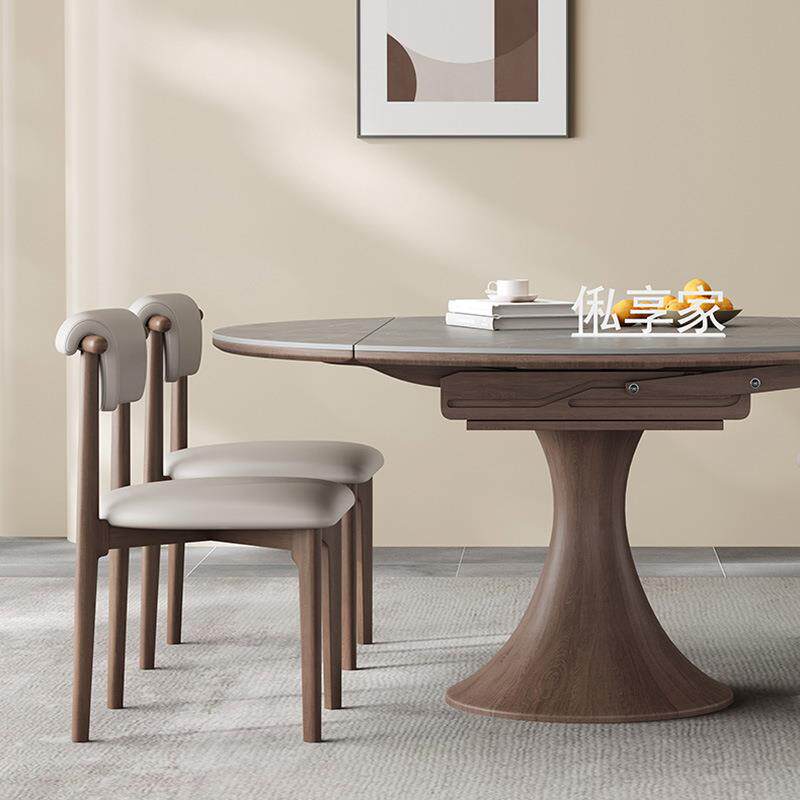 北欧岩板餐桌方变圆桌可伸缩现代简约实木方圆两用可拉伸折叠桌椅