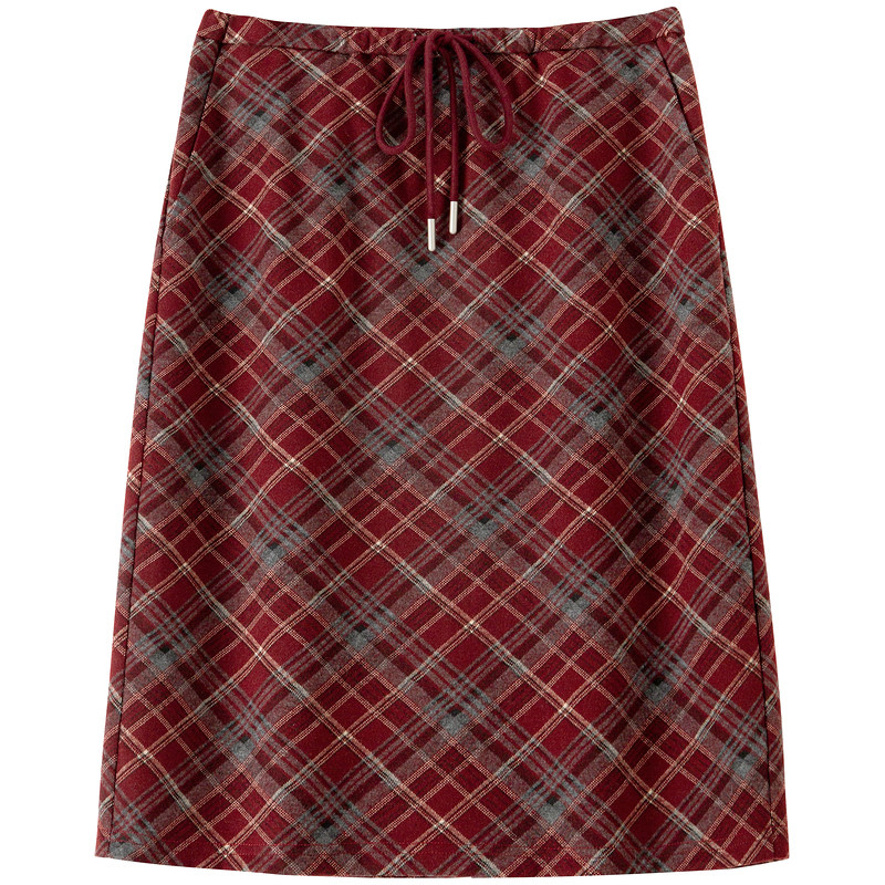 BANANA BABY2025年冬新款复古学院风松紧腰直筒半身裙女抽绳中裙