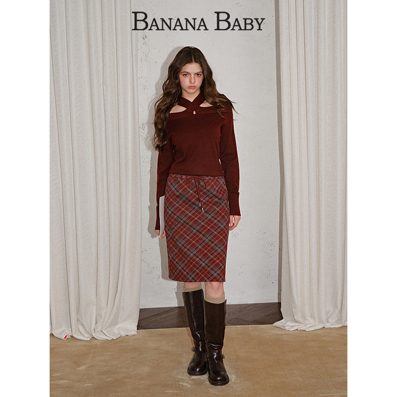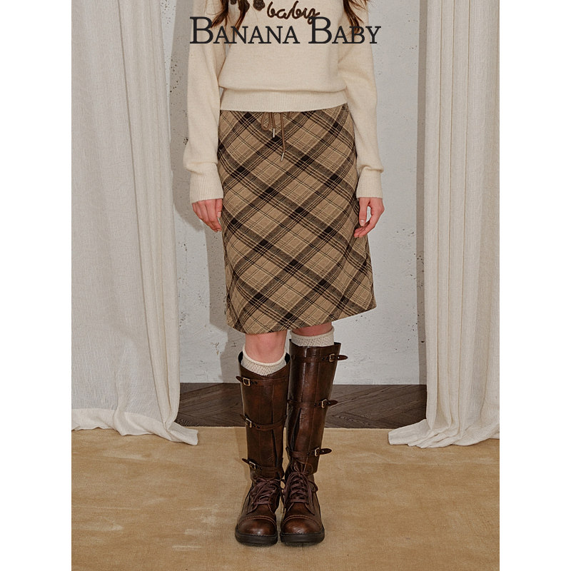 BANANA BABY2025年冬季新款复古格纹半身裙女高腰小个子时尚短裙