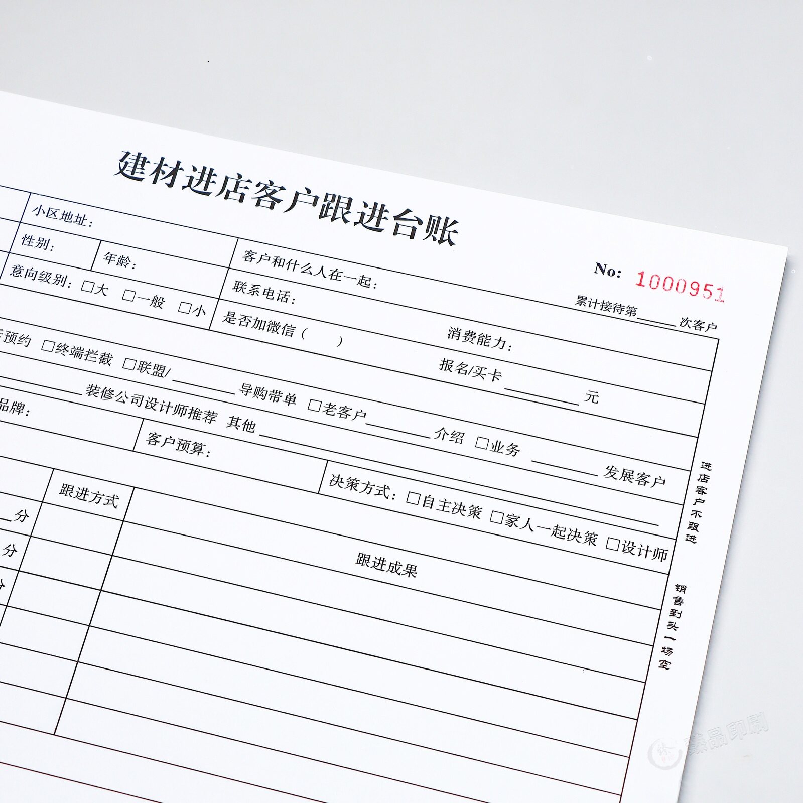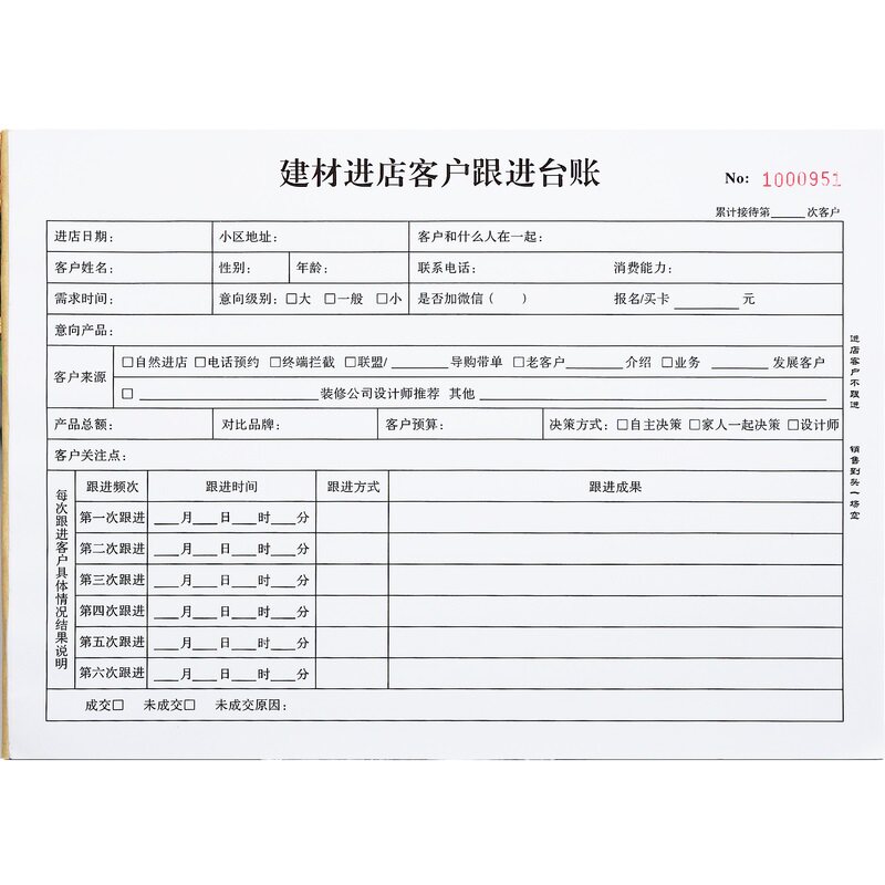 家居建材客户登记跟踪表A4意向客户跟进记录本进店顾客信息记录表