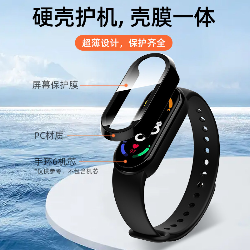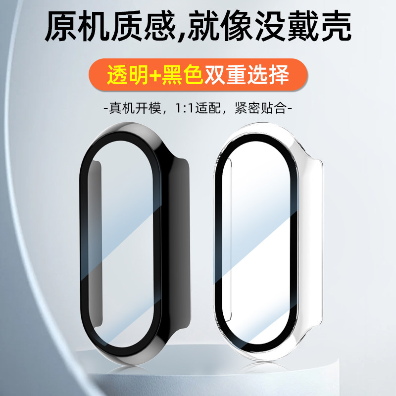 适用小米手环10保护壳9nfc版保护套壳膜一体小米8抗摔九代配件xiaomi手表9钢化膜外壳边框表壳黑色陶瓷透明
