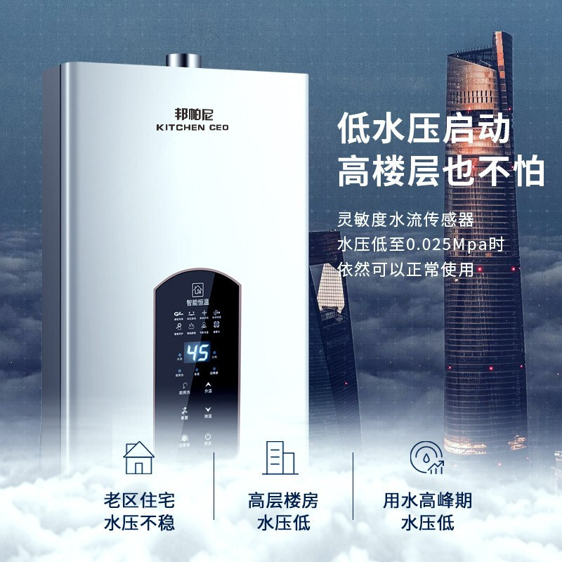 邦帕尼燃气热水器天然气家用遥控即热恒温洗澡强排式水汽双调抑菌