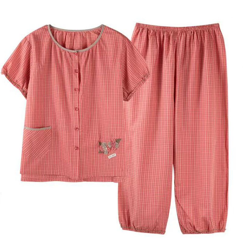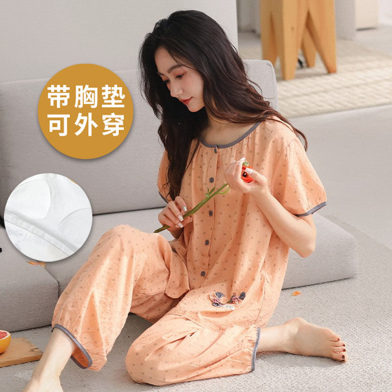 浪莎2025新款带胸垫纯棉睡衣女春夏季短袖七分裤家居服两件套上衣