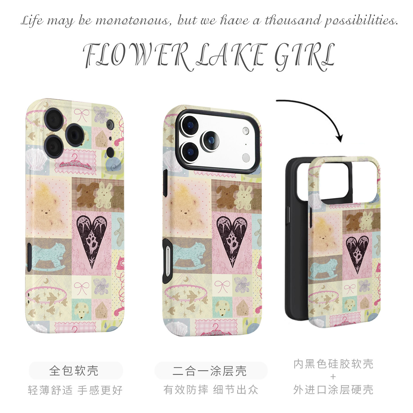 【花间少女】粉系爱心拼图适用iPhone16/15promax手机壳华为pura70小米15/13畅享70vivoS20软iqooneo10苹果13