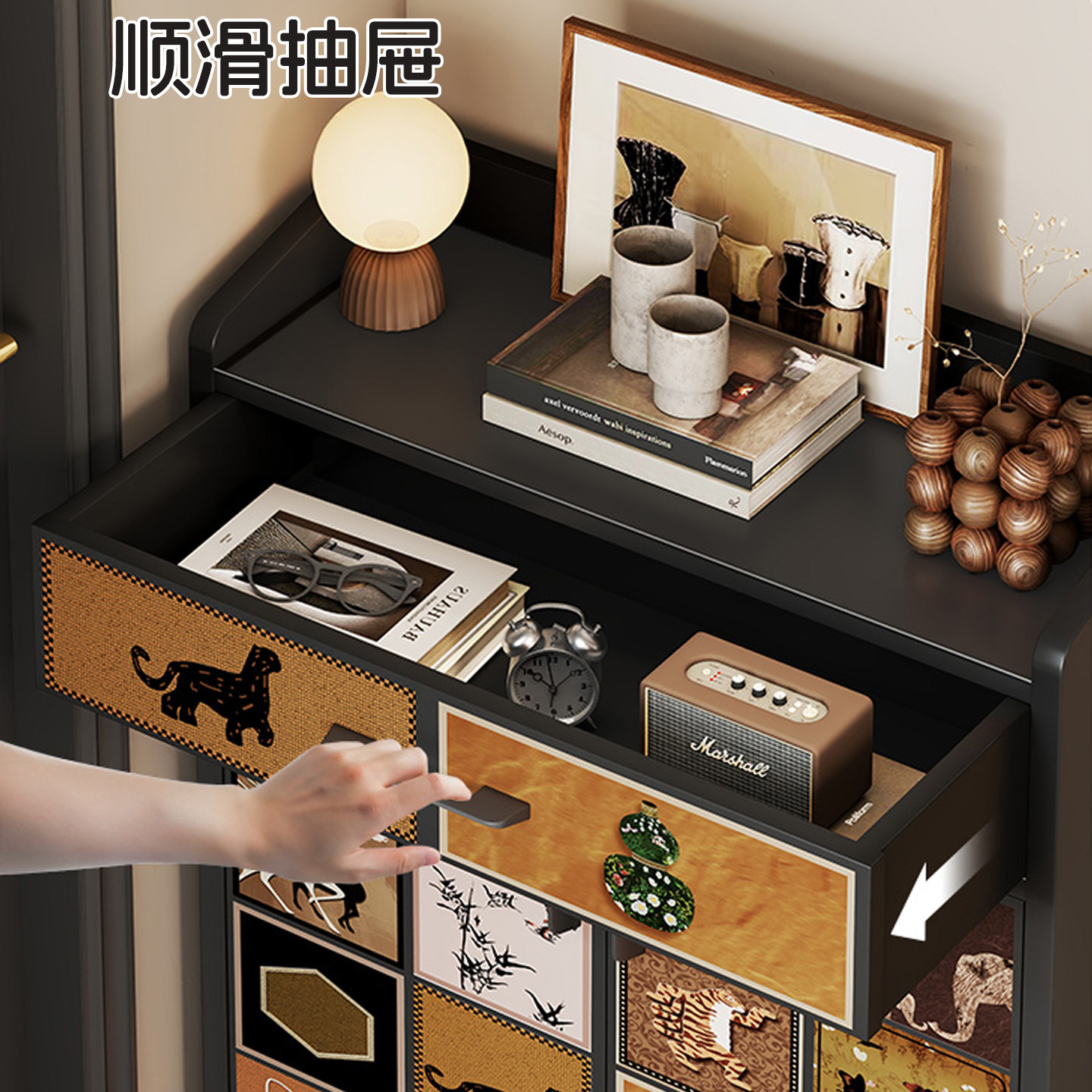 实木圆角鞋柜家用门口中古风收纳柜一体靠墙防尘多层2026新款鞋架