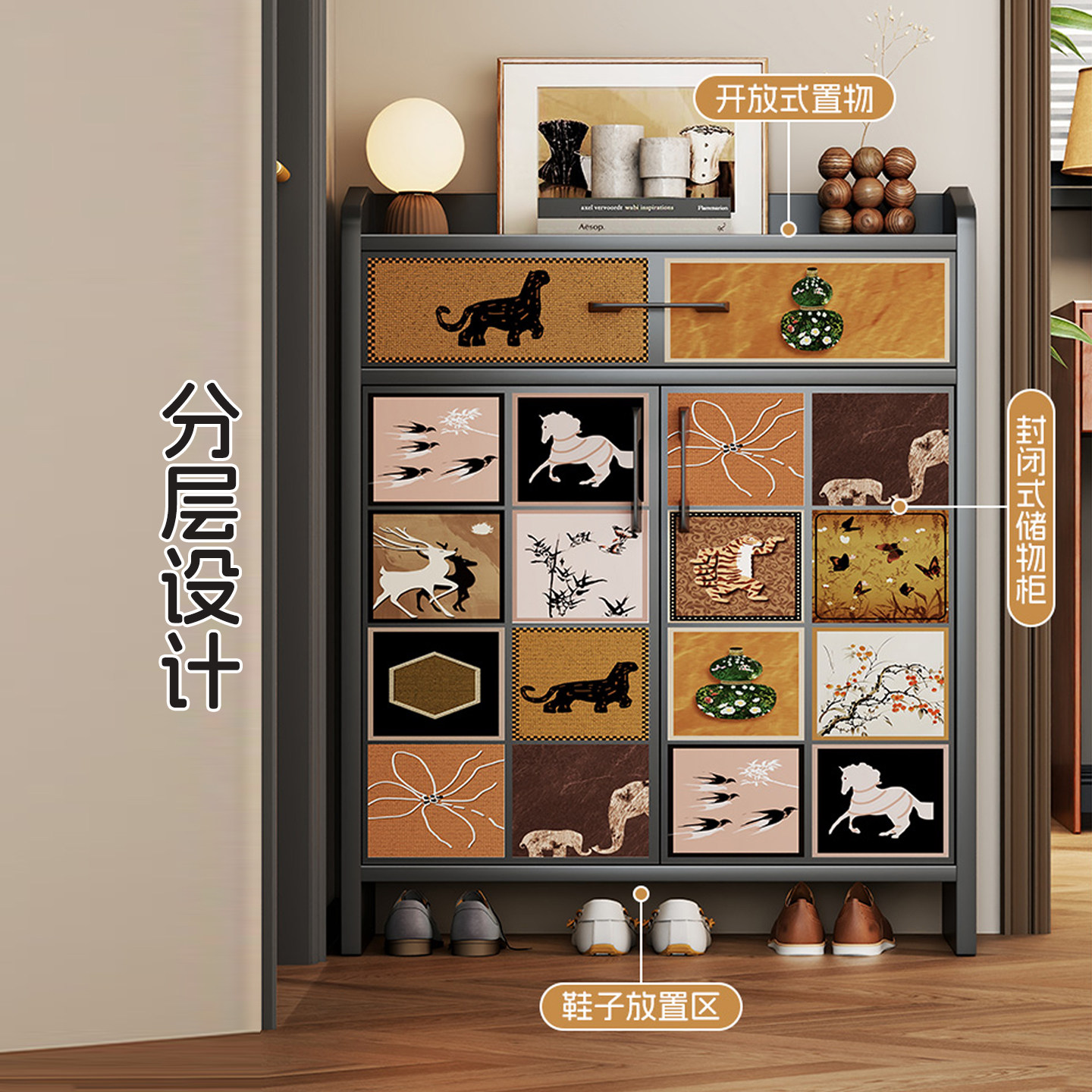 鞋柜家用门口实木芯收纳柜一体靠墙新款鞋架室内新中式入户玄关柜