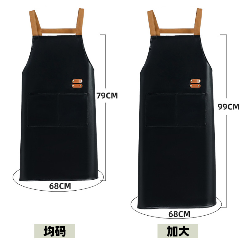 PU背带围裙防水防油水产专用纯色男女同款餐饮厨房时尚工作服加长