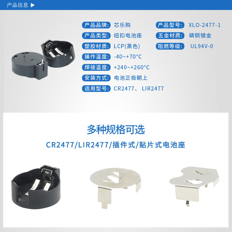 电池扣五金弹片插件贴片配件CR2477纽扣电池座3v系列LIR2477通用