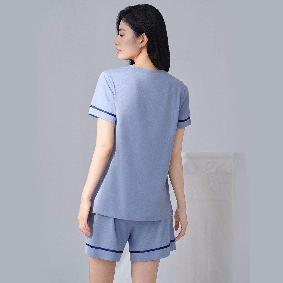 安莉芳专柜新品棉莫混纺带杯睡衣女士可外穿家居服套装EL00906