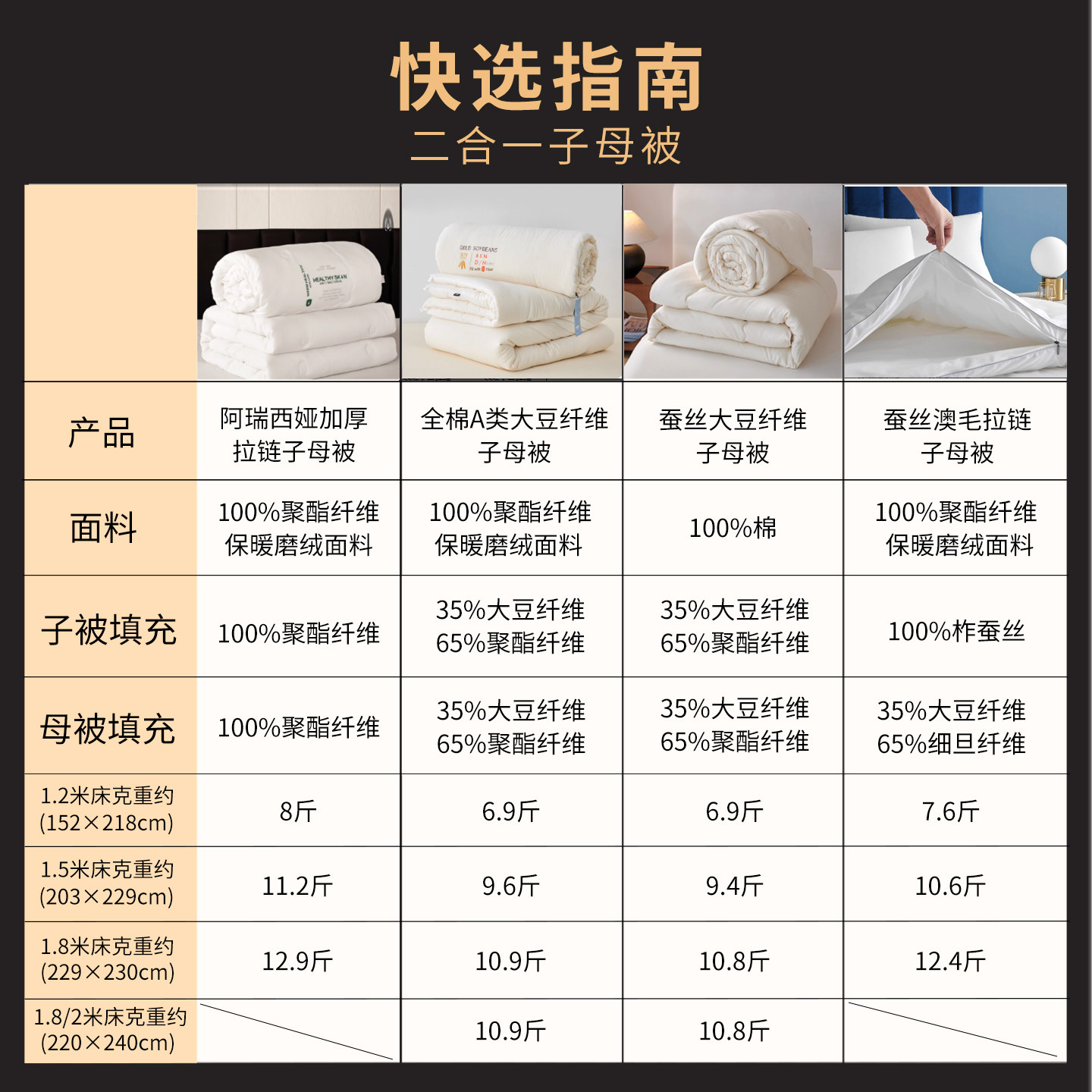 多喜爱子母被二合一拉链款四季通用被子被芯加厚保暖单人学生宿舍