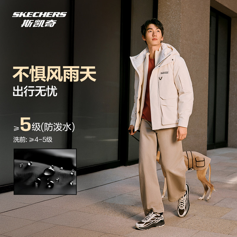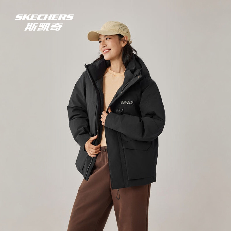 斯凯奇官方outlets羽绒服新款男女款抗皱中长款防泼水保暖外套