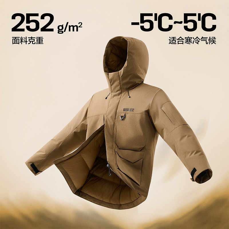 防泼水外壳 羽绒填充 可调节帽型 魔术贴