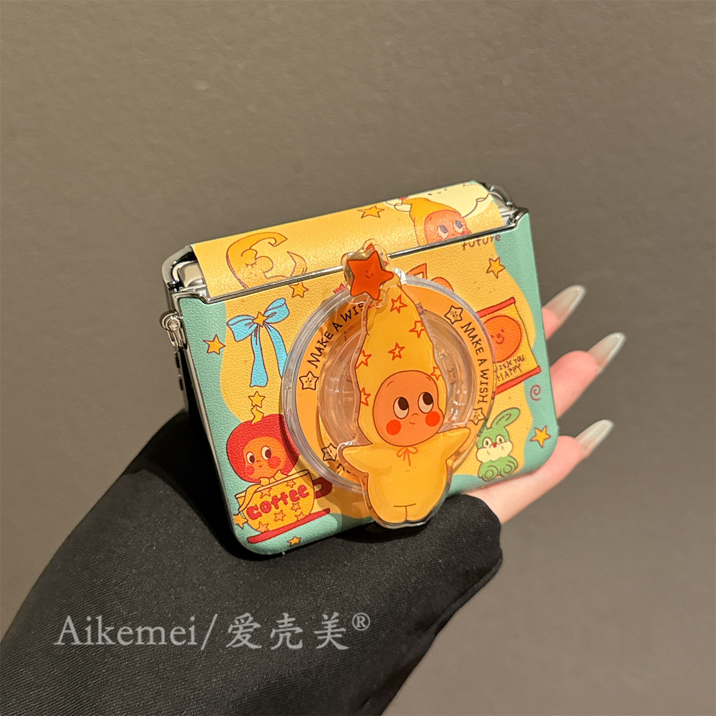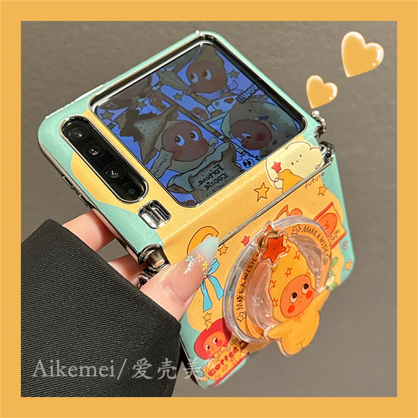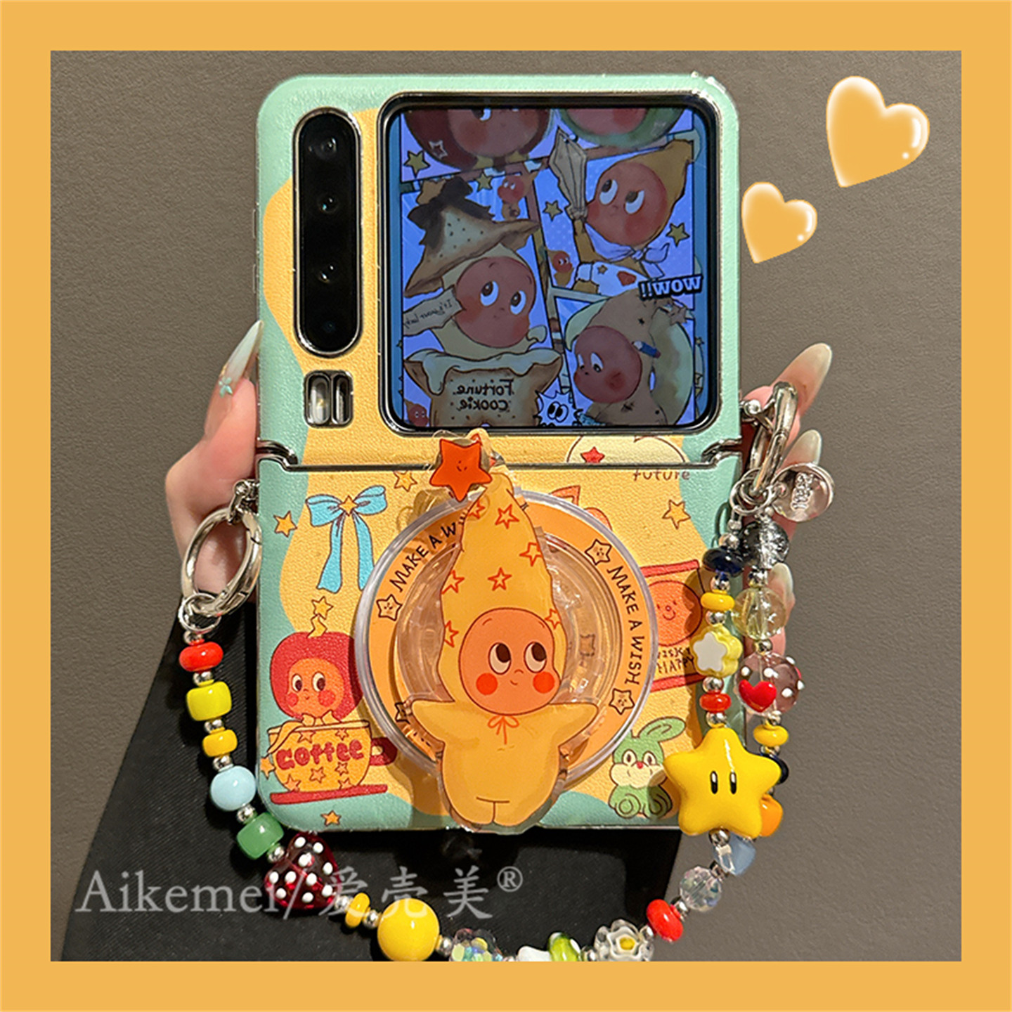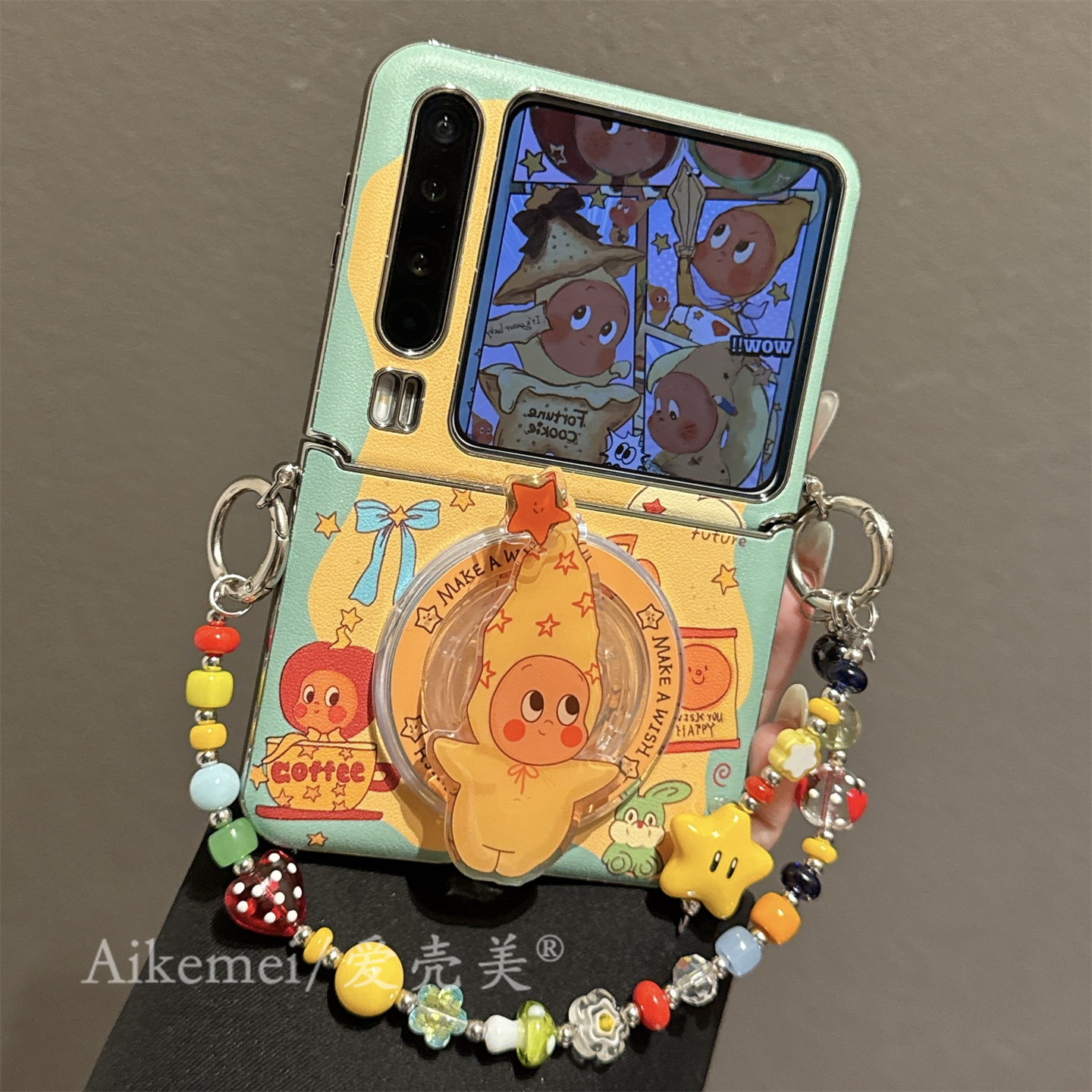 适用华为purax折叠屏手机壳pocket2可爱卡通围边星星男孩磁吸支架小米MIXFlip2链条挂绳三星Zflip765护轴女款