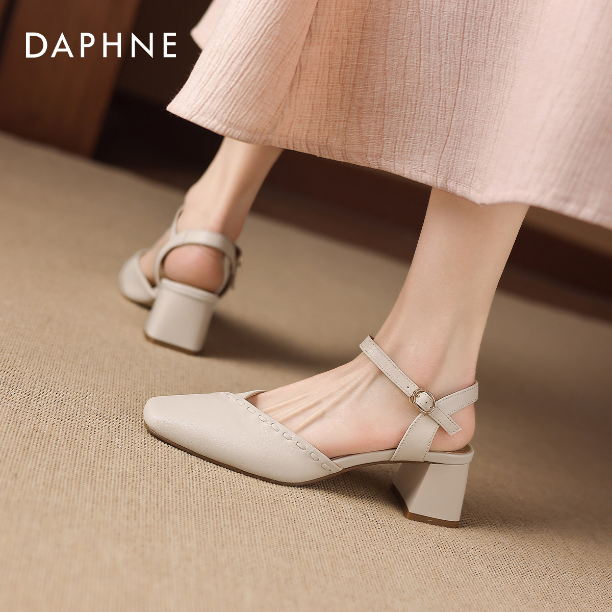 达芙妮包头凉鞋女2026新款春法式气质不累脚粗跟玛丽珍单鞋配裙子