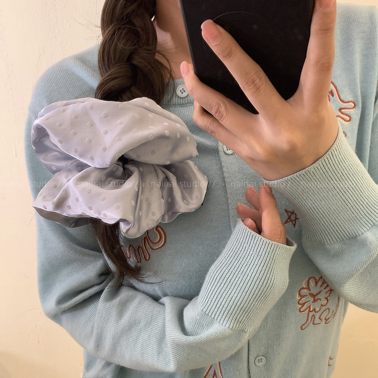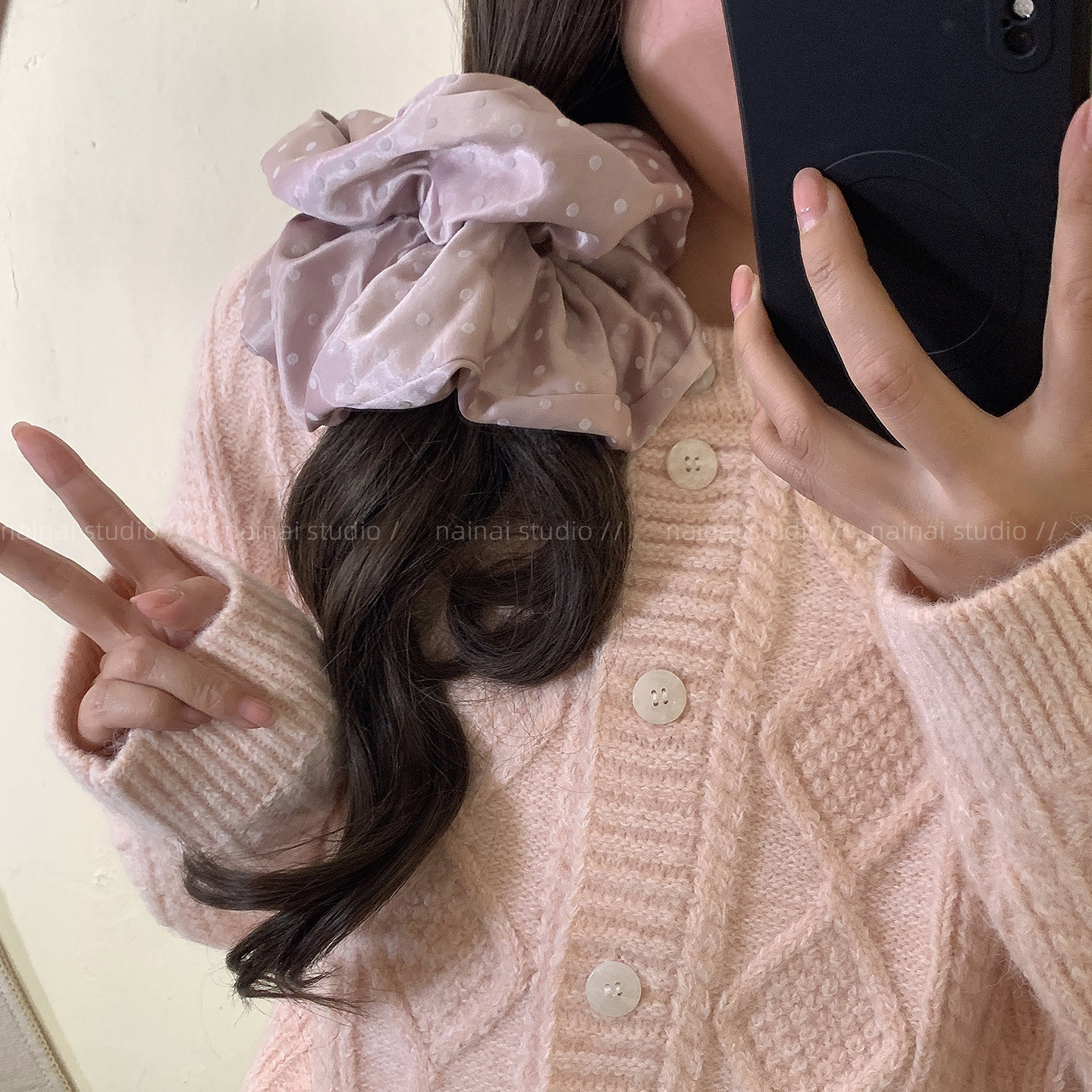 波点缎面大肠发圈~高级感复古法式韩系ins风丸子头低马尾发绳头绳