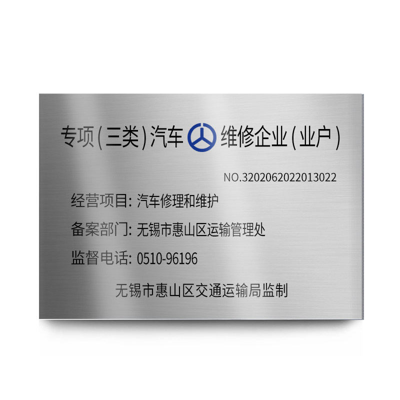 一二三类汽车不锈钢广告牌修理厂汽修铜牌机动车维修标志牌定制做