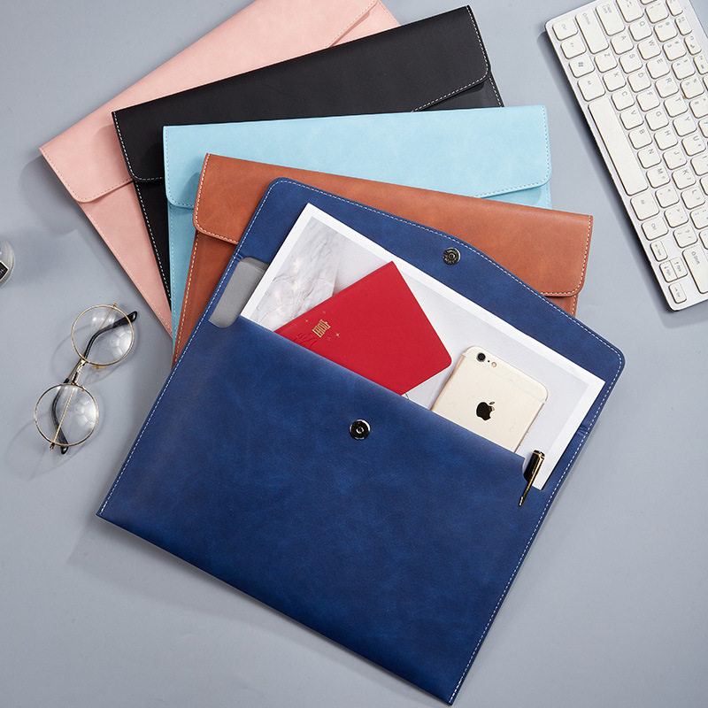 新品 A4皮质文件包资料包防水简约商务办公按扣加厚收纳袋印LOGO