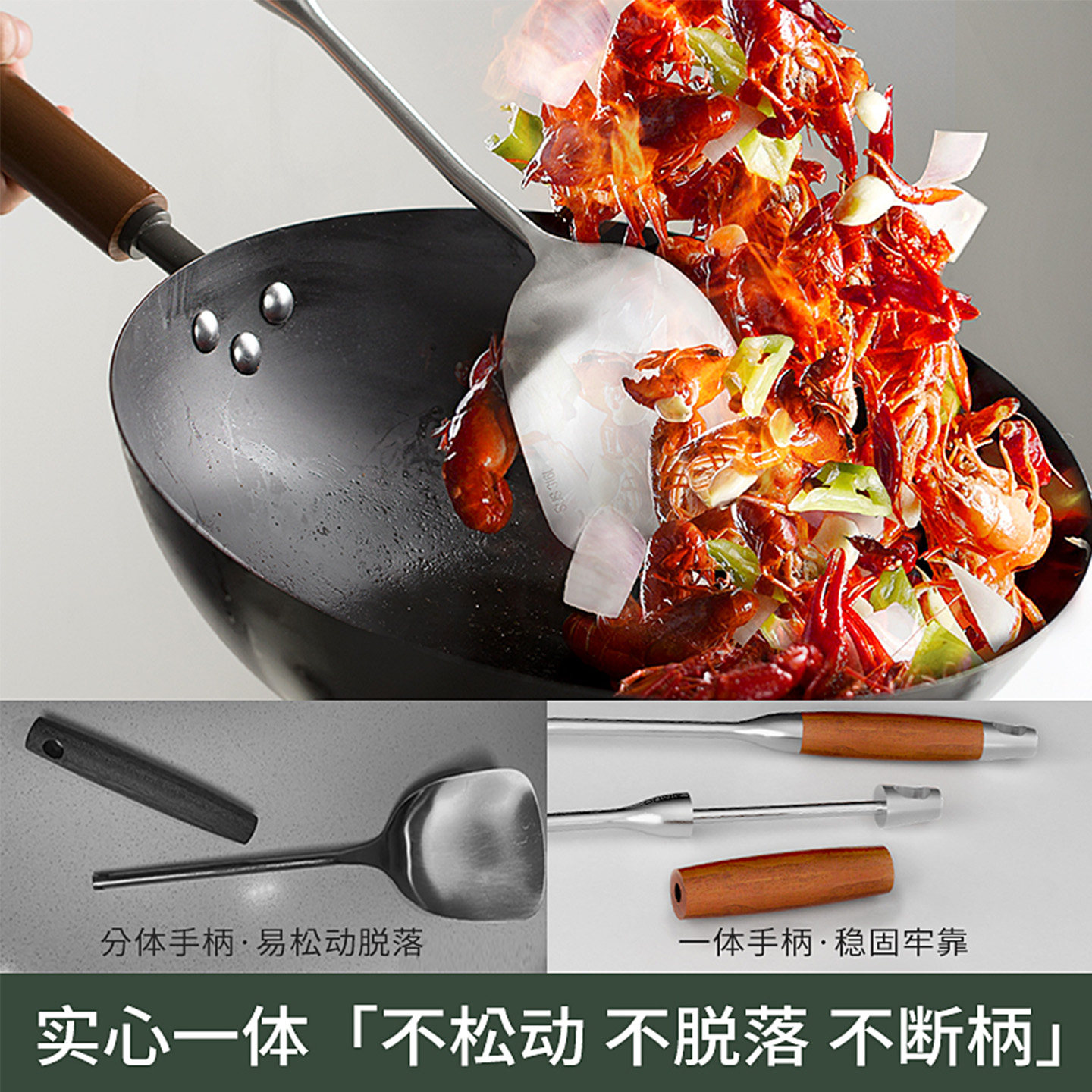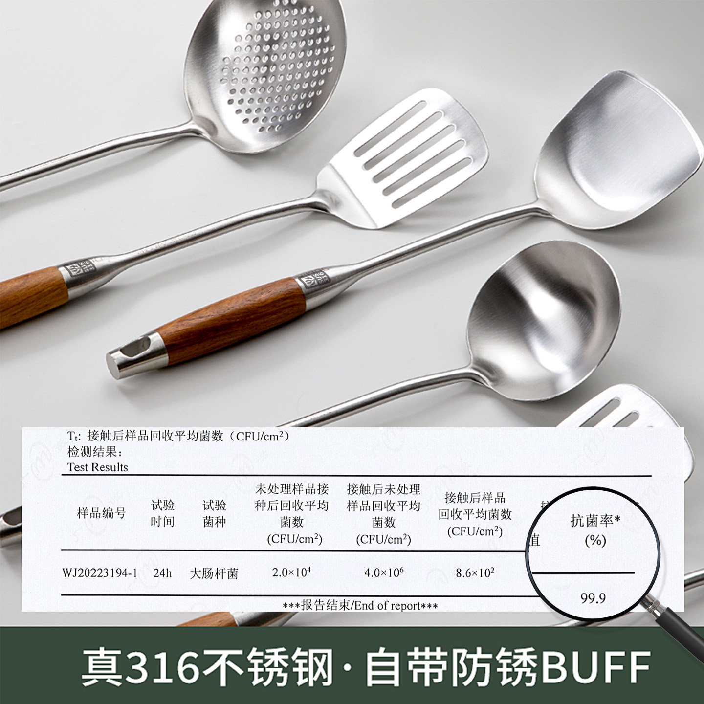 真316不锈钢锅铲加厚炒菜铲子汤勺捞漏勺木柄把全套家用厨具套装