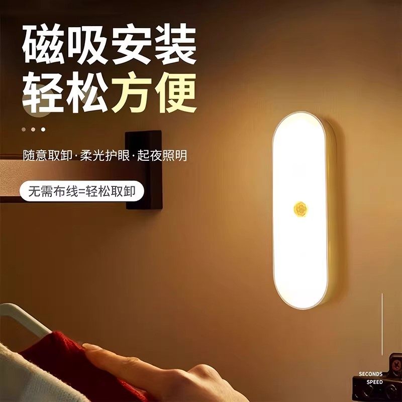 自动人体感应灯起夜卧室婴儿喂奶护眼壁侧发光过道充电小夜灯地脚