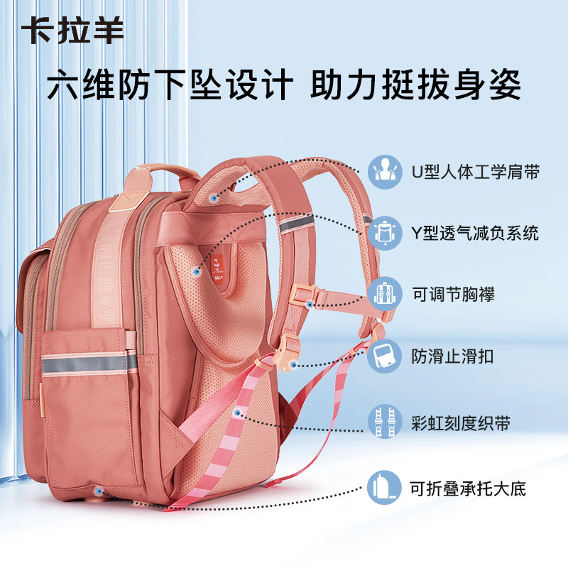 卡拉羊中学生书包减负风琴书包男女生青少年书包小学生书包儿童双肩包男孩大容量女孩防水书包品牌旗舰正品