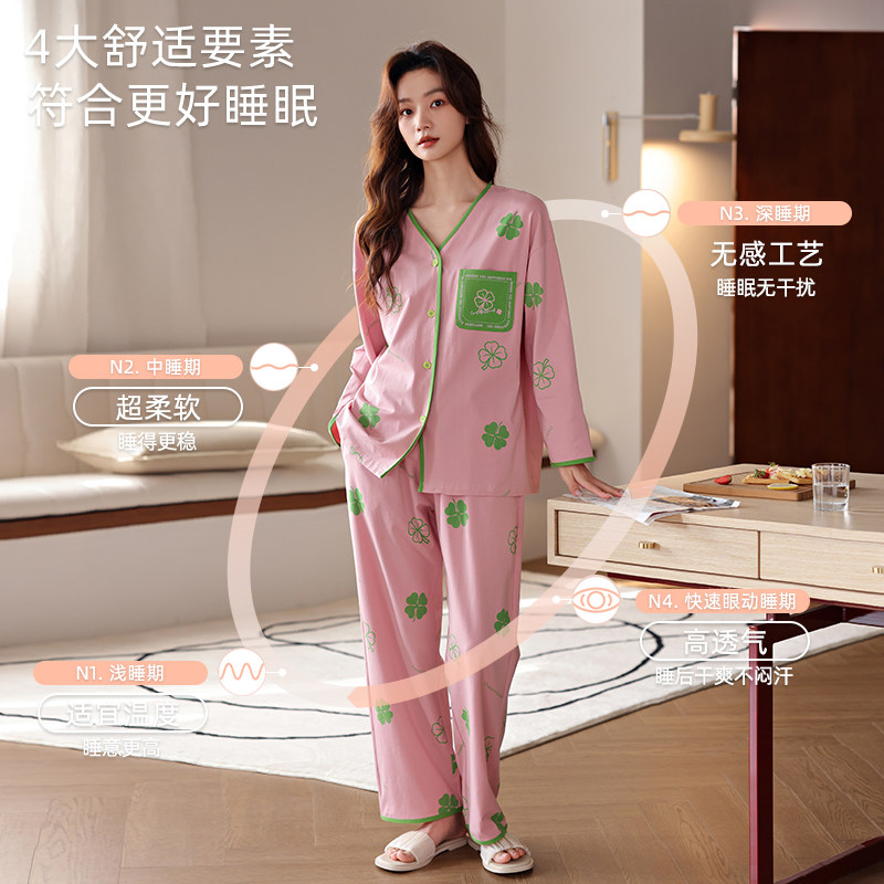 浪莎睡衣女春秋款纯棉长袖2025年新款秋冬大码薄款宽松开衫家居服