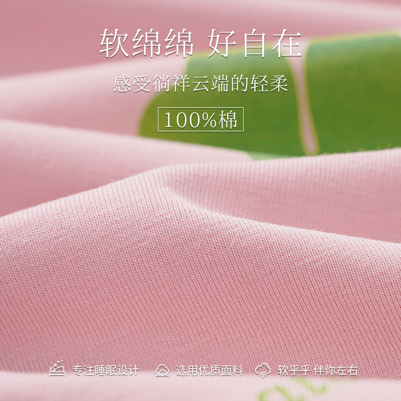 纯棉长袖睡衣女秋季带胸垫可爱卡通款圆领套头春秋天家居服可外穿
