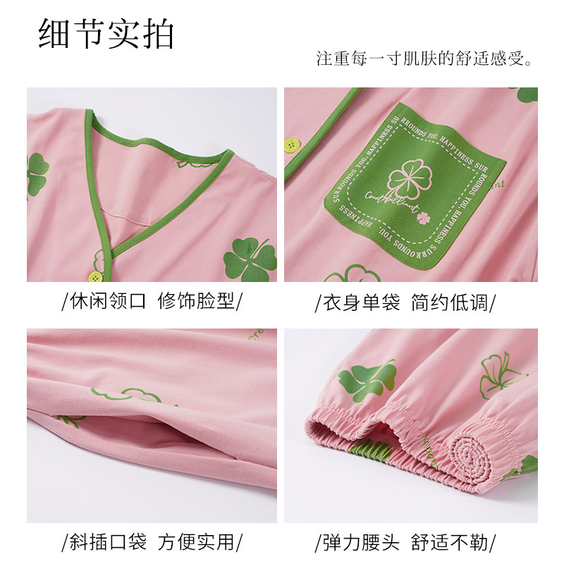 【清仓价】春长袖睡衣女双面舒棉绒开衫家居服套装大码长裤可外穿