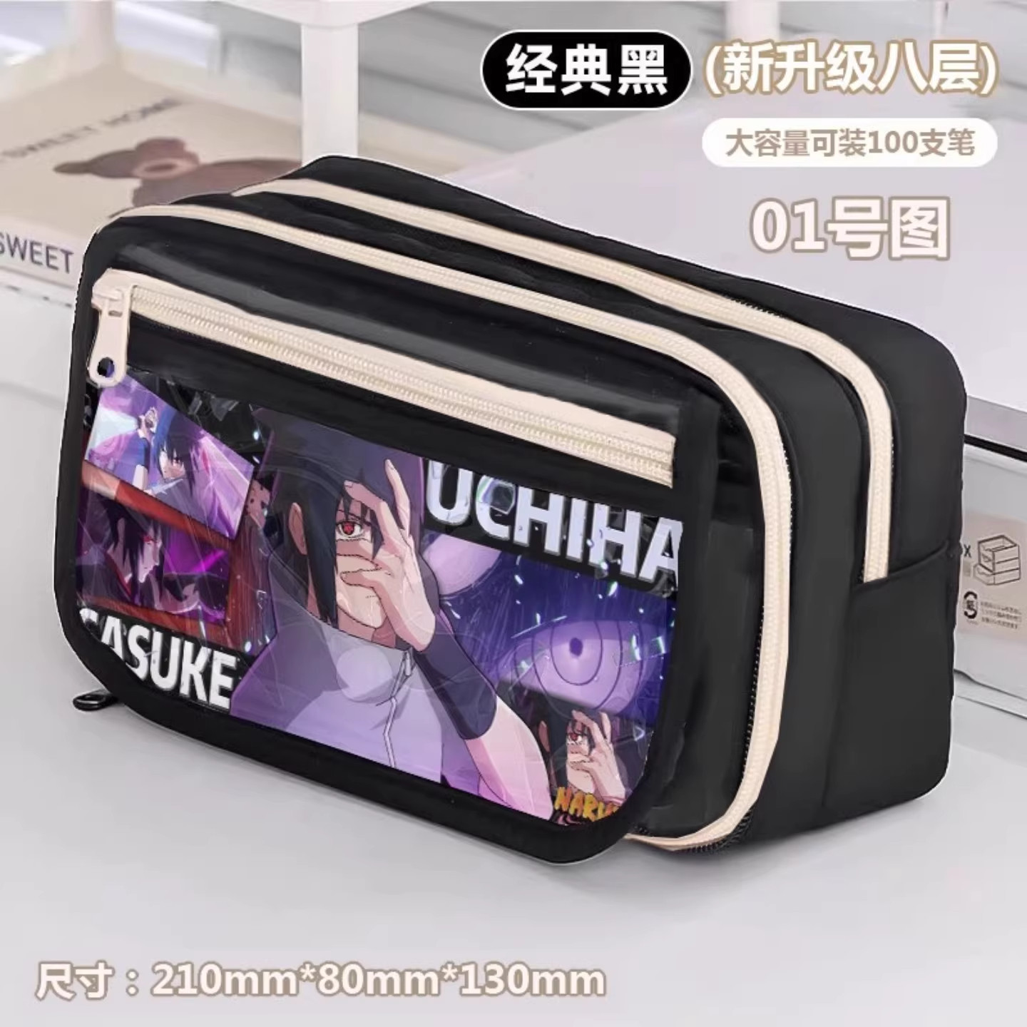 火影笔袋佐助带土鸣人大容量小学初中女生男孩动漫多层文具收纳盒