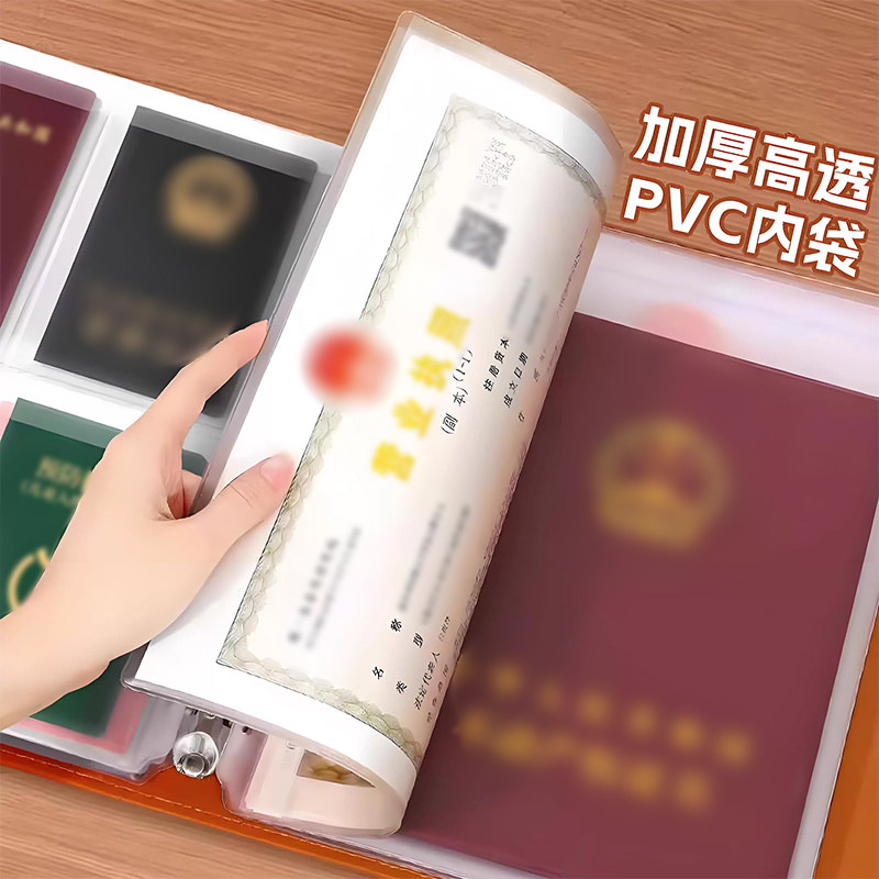加厚皮面证件收纳本宝宝家庭卡包册带锁多功能大容量证书密码锁A4